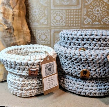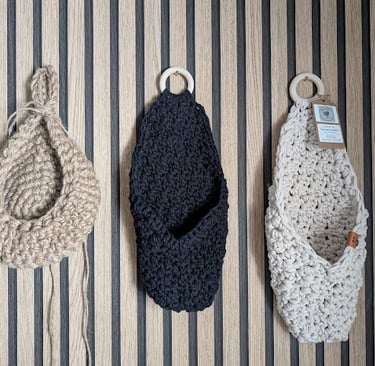 Des créations de coton, jute, corde et de laine crochetés pour d'embellir votre décor ou offrir en cadeau !